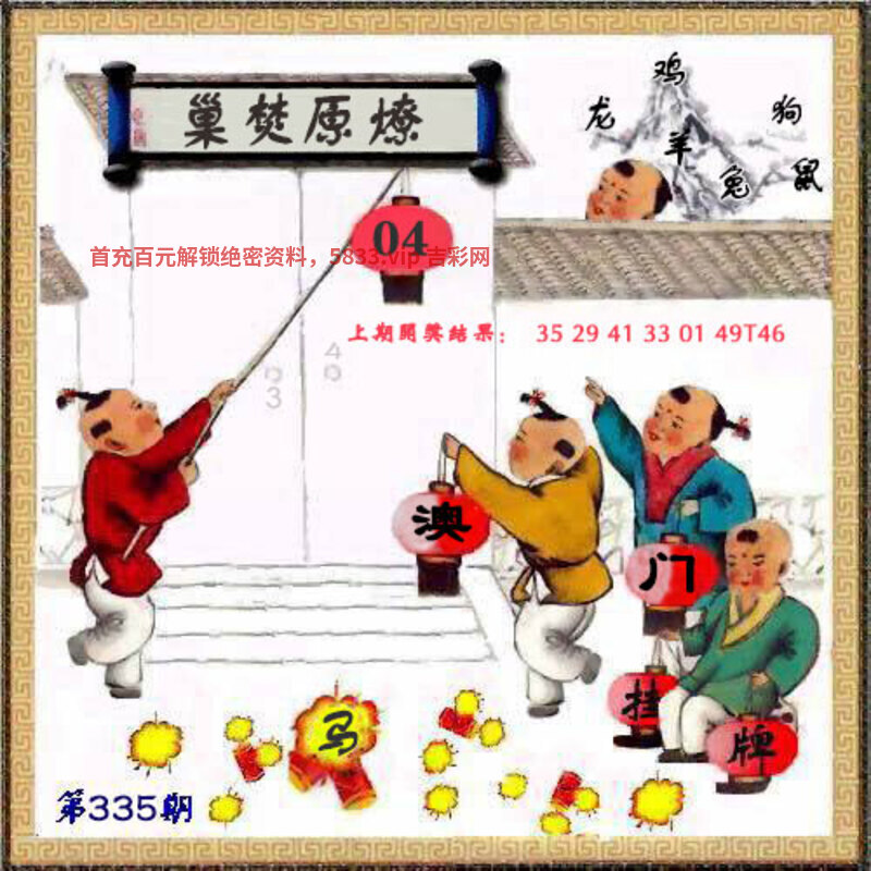 | 335期挂牌《巢焚原燎》 解释:变为煨烬描绘都城遭战火摧毁的景象。 解:遭战火摧毁。解虎狗牛马蛇鸡,挂:04爆:马。 七肖:虎马狗牛蛇鸡猴 |